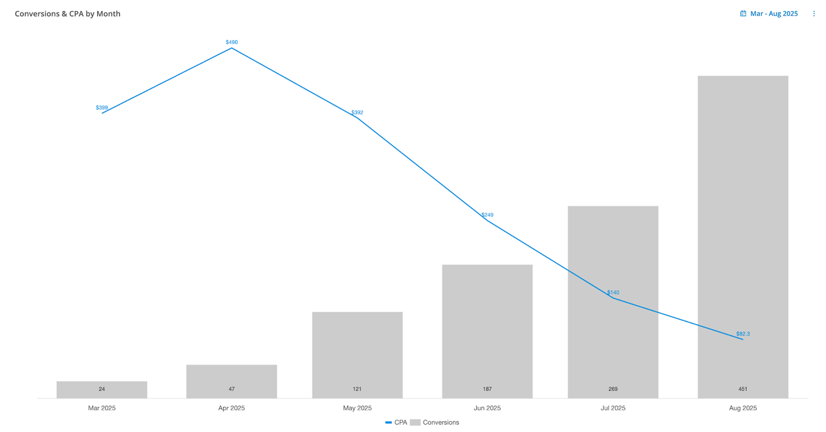 Since launching in March, Axiom’s lead volume has grown month over month, and its CPL continues to drop. August was our best month yet, with over 451 leads at an $82 CPL (their goal was $100 or better). Thanks to Christian’s smart moves and a lot of hard work from the Hutch team, they’re back on track to healthy, sustainable growth.